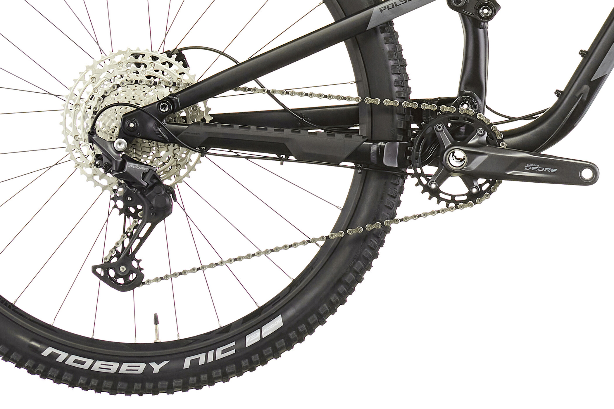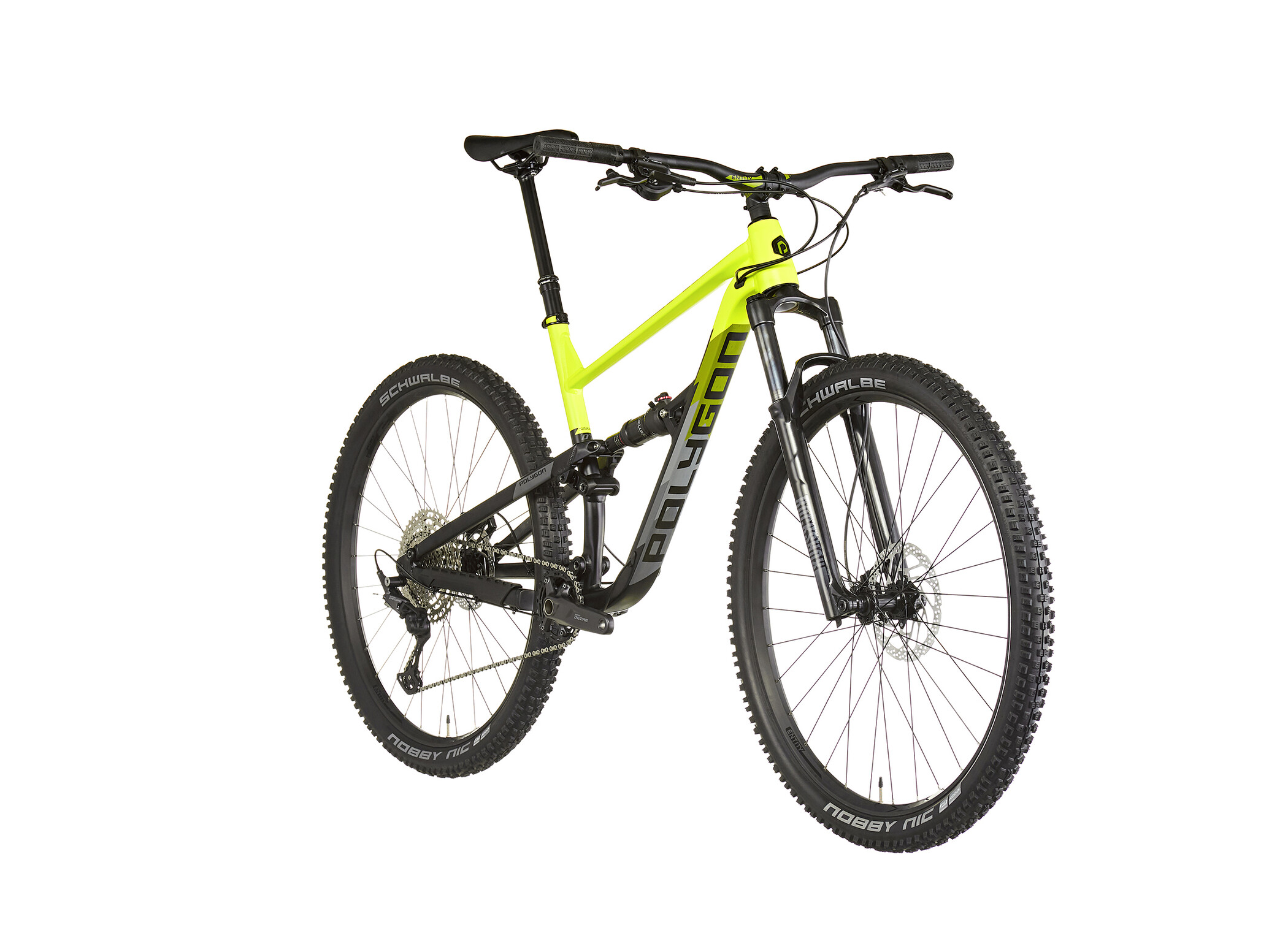 Conçu en aluminium, le cadre affiche ainsi une géométrie agressive avec un angle de direction de 67° et 120 mm de débattement à l’arrière. Il est équipé d’ un système de suspension fiable et robuste avec une liaison monobloc réduisant la flexion latérale dans le triangle arrière et améliorant le mouvement linéaire et les performances de l’amortisseur.Pour optimiser ce système et exploiter au mieux les capacités du cadre, Polygon a opté pour l’amortisseur Rockshox Deluxe Select Plus. Pour la suspension avant, la marque a également opté pour la marque Rockshox avec le modèle Recon Silver RL en 120 mm de débattement.